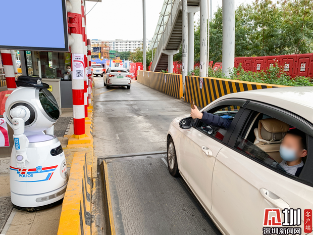 ▲5G機(jī)器人義警“黃田田”提醒回深車輛掃碼登記。