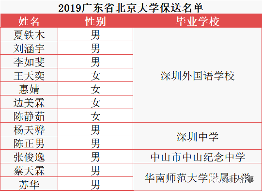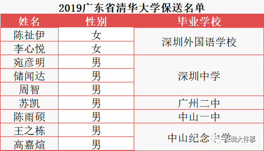 2019年廣東省清北保送共21人,深圳14人,深外占9人;