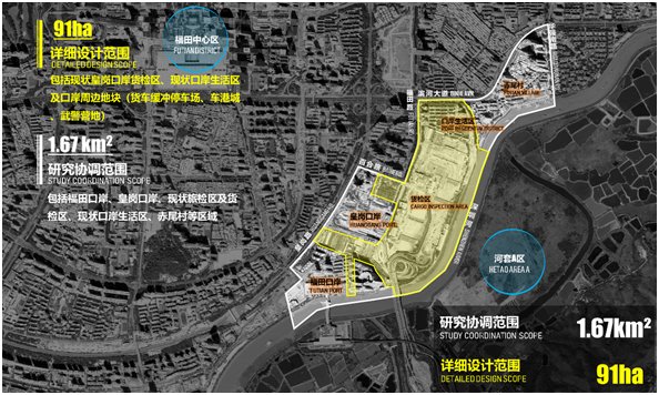 競賽由深圳市投資控股有限公司主辦,深港科技創(chuàng)新合作區(qū)發(fā)展有限公司承辦,深圳市規(guī)劃和自然資源局、深圳市建筑工務(wù)署、福田區(qū)人民政府為技術(shù)指導(dǎo)單位,旨在落實關(guān)于皇崗口岸片區(qū)遴選國際一流設(shè)計師進行整體設(shè)計、統(tǒng)一開發(fā)、連片建造的要求,通過“定向邀請5家+資格預(yù)審10家”的方式,遴選了15家國際知名設(shè)計機構(gòu)參賽。其中,詳細設(shè)計范圍包括現(xiàn)狀皇崗口岸貨檢區(qū)、口岸生活區(qū)及口岸周邊地塊,面積約0.91平方公里;研究協(xié)調(diào)范圍為河套C區(qū),包括詳細設(shè)計范圍及周邊的福田口岸、赤尾村等區(qū)域,面積1.67平方公里。