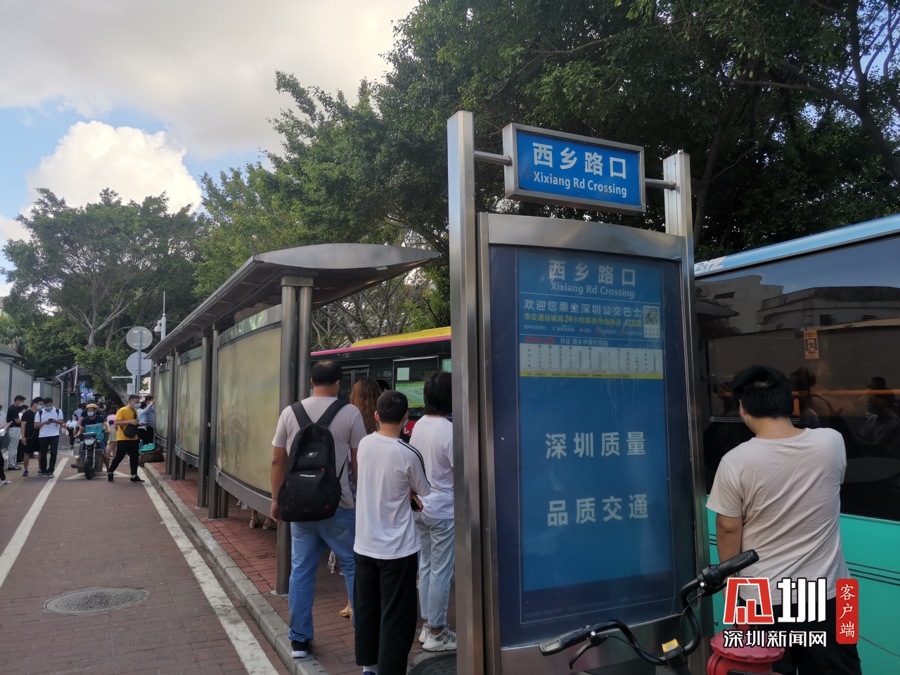 【廣深公路】上午8時19分,記者位于西鄉(xiāng)路口公交站臺的實時路況,該站臺有多路公交來往市區(qū)。