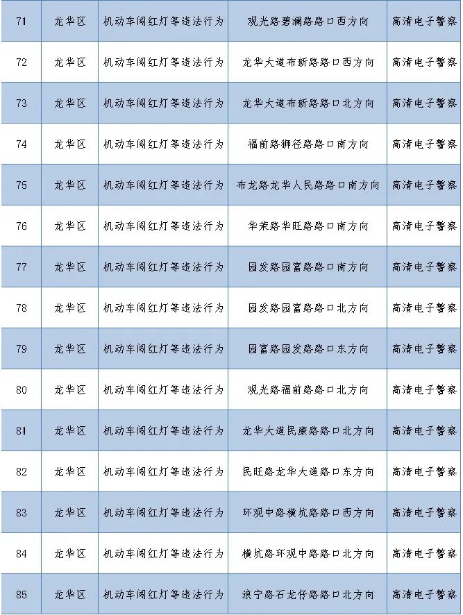 見圳客戶端·深圳新聞網(wǎng)2020年7月28日訊 為保障道路的通行有序和安全,加大對機動車違法行為的非現(xiàn)場執(zhí)法力度,保障深圳道路交通安全暢順。近期,深圳交警根據(jù)《道路交通安全違法行為處理程序規(guī)定》(公安部令105號)第十六條規(guī)定,依法公布啟用262套交通技術(shù)監(jiān)控設(shè)備。