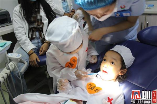 深圳新聞網(wǎng)訊(見圳客戶端、深圳新聞網(wǎng)記者 李慧 通訊員 楊紀歐)10月25日,羅湖區(qū)桂園街道老圍社區(qū)黨群服務中心組織社區(qū)青少年到醫(yī)院開展了一場社會實踐體驗活動,13位小朋友身穿白大褂,頭戴醫(yī)生帽,手拿口腔鏡,為“病人”檢查牙齒,當了一回牙醫(yī),體驗了當醫(yī)生的快樂,同時也感知到愛護牙齒的重要。3歲的劉嘉樂小朋友給姐姐看完牙齒后對媽媽說:“媽媽,姐姐有蛀牙。我以后也要好好刷牙?!?/span>