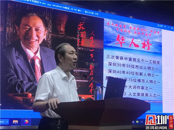 四十載波瀾壯闊、四十載砥礪前行,“春天的故事”見證了深圳的騰飛。此次活動(dòng)還特別邀請(qǐng)到了《春天的故事》詞作者、深圳經(jīng)濟(jì)特區(qū)建立40周年創(chuàng)新創(chuàng)業(yè)人物和先進(jìn)模范人物、羅湖區(qū)文學(xué)藝術(shù)界聯(lián)合會(huì)創(chuàng)作員蔣開儒作專題報(bào)告。蔣開儒創(chuàng)作了《春天的故事》《走進(jìn)新時(shí)代》《中國(guó)夢(mèng)》《我的中國(guó)節(jié)》等唱響國(guó)內(nèi)外的歌曲,他聲情并茂地講述了自己創(chuàng)作歌曲的故事,向大家分享了自己對(duì)祖國(guó)的熱愛、對(duì)人生的感悟、對(duì)夢(mèng)想的追求、對(duì)未來(lái)的展望。