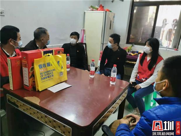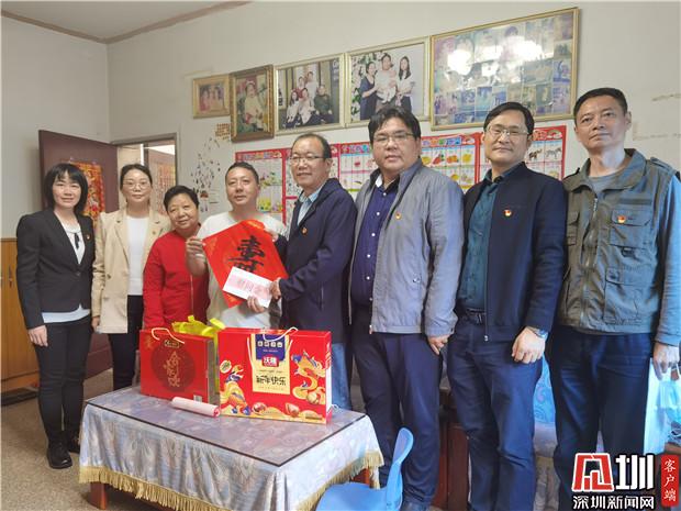 隨后,陳鵬、藍岸率領(lǐng)報業(yè)集團紀檢監(jiān)察室黨支部、深圳新聞網(wǎng)黨總支部黨員代表,在清水河街道黨工委副書記劉曉春、街道四級調(diào)研員陳小龍、梅園社區(qū)黨委書記曾建輝、副書記陳秋珊等人的陪同下,對梅園社區(qū)抗疫先鋒黨員、單親婦女、困難居民、殘疾人士進行分組探訪慰問并送上新春祝福。大家?guī)厦篮玫淖8?、喜慶的春聯(lián)、慰問金、臘腸等慰問品,分四組慰問走訪。