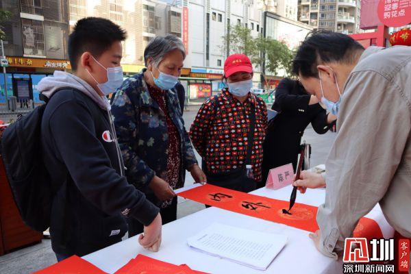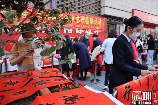 據(jù)悉,羅湖區(qū)書(shū)法家協(xié)會(huì)于2021年春節(jié)前夕組織一批優(yōu)秀書(shū)法家深入社區(qū)基層,現(xiàn)場(chǎng)為群眾書(shū)贈(zèng)春聯(lián),書(shū)贈(zèng)福字,目前活動(dòng)先后在羅湖美術(shù)館南廣場(chǎng)、漁民村、羅湖區(qū)委等地舉辦多場(chǎng)。羅湖區(qū)書(shū)法家書(shū)贈(zèng)春聯(lián)活動(dòng)已連續(xù)舉辦了22年,深受群眾喜愛(ài),成為羅湖的一項(xiàng)品牌活動(dòng)。