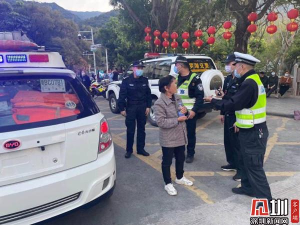 得知該情況后,現(xiàn)場(chǎng)隊(duì)員一方面穩(wěn)定老人家情緒,另一方面向其了解家人的基本情況。據(jù)老人描述,當(dāng)天她與女兒和女婿兩人來到梧桐山游玩,結(jié)果不小心走散。而老人身上并沒有攜帶相關(guān)證件和通訊工具,也無法提供家人具體聯(lián)系方式和證件號(hào)碼。由于當(dāng)時(shí)游人眾多,為確保老人安全,盡快幫助其找回走散的家人,現(xiàn)場(chǎng)隊(duì)員立即與交警隊(duì)指揮中心反映情況,并聯(lián)系東湖派出所協(xié)同開展調(diào)查。在執(zhí)勤交警與派出所警力的緊急幫助下,老人懸著的心也總算放下,并對(duì)隊(duì)員的熱心幫助表示衷心感謝。