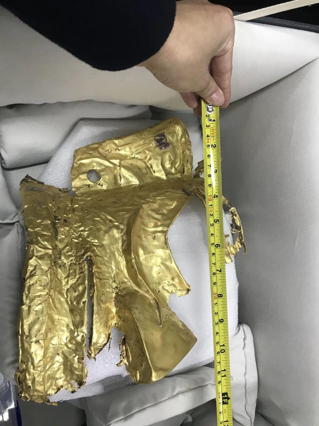 目前,三星堆遺址考古工作正在進(jìn)行中,新發(fā)現(xiàn)的六個“祭祀坑”已發(fā)掘至器物層,出土金面具殘片、鳥型金飾片、金箔、眼部有彩繪銅頭像、巨青銅面具、青銅神樹、象牙、精美牙雕殘件、玉琮、玉石器等重要文物。