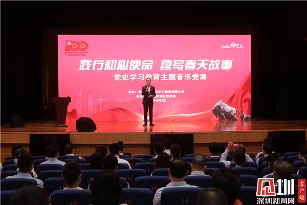 見圳客戶端·深圳新聞網(wǎng)4月2日訊(記者 李慧 通訊員 王舒琪)4月1日下午,羅湖青年相聚一堂,共同參加一場別開生面的沉浸式“學(xué)黨史、強(qiáng)信念、跟黨走”黨史學(xué)習(xí)教育主題音樂黨課?;顒犹匮松钲趶V電集團(tuán)廣播中心黨委委員劉洋用“藝術(shù)+黨史”的全新形式作主題講解。羅湖區(qū)委書記羅育德,區(qū)領(lǐng)導(dǎo)呂漫妮、李志榮、陳龍興、羅安娜,團(tuán)市委副書記賴鋒等出席了活動。