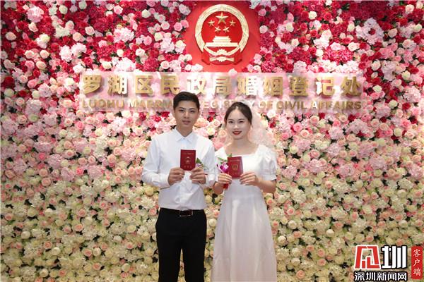 羅湖區(qū)婚姻登記處將疫情防控與高質(zhì)量登記服務(wù)有機(jī)結(jié)合,在準(zhǔn)備好充足防疫物資的基礎(chǔ)上,現(xiàn)場(chǎng)引導(dǎo)新人完成防疫流程,完成體溫測(cè)量和個(gè)人信息登記;同時(shí)聯(lián)動(dòng)多部門共同合作,確保疫情防控常態(tài)化下的婚姻登記服務(wù)工作平穩(wěn)有序開展。5月20日當(dāng)天,羅湖婚姻登記處辦理結(jié)婚登記218對(duì)。