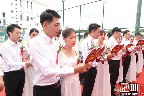新郎身穿白襯衣,新娘身著潔白婚紗,他們十指緊扣,笑容甜蜜,在眾人的見證下交宣讀誓言、深情擁吻,許下一生愛的承諾。羅湖區(qū)副區(qū)長(zhǎng)馮健和羅湖區(qū)民政局局長(zhǎng)楊文秀作為特邀頒證師,分別為20對(duì)新人頒發(fā)結(jié)婚證書并送上誠(chéng)摯的祝福,新人們的歡聲笑語充滿了婚姻登記處的每個(gè)角落,處處洋溢著幸福與喜悅。通過集體頒證莊嚴(yán)而神圣的儀式感,向新人們強(qiáng)調(diào)法律的嚴(yán)肅性和婚姻的莊嚴(yán)性,讓他們銘記婚姻家庭蘊(yùn)含的責(zé)任與擔(dān)當(dāng),同時(shí)倡導(dǎo)廣大市民樹立“重登記、強(qiáng)責(zé)任、崇節(jié)儉”的婚俗新風(fēng)意識(shí),形成婚事新辦、簡(jiǎn)辦的文明新風(fēng)尚。