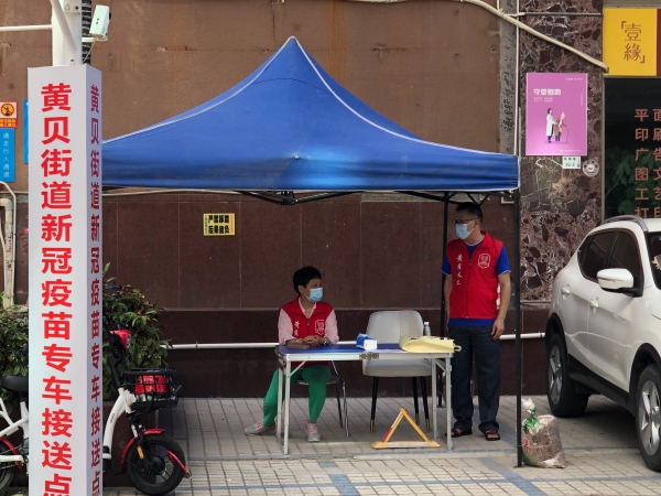 炎炎烈日,為貼心服務(wù)群眾,黃貝街道設(shè)立了接種新冠疫苗專車接送點(diǎn)。接送點(diǎn)的義工告訴記者,在戶外工作特別消耗水,一個(gè)上午就喝掉四五瓶飲用水,雖然準(zhǔn)備了防曬的雨棚,但路上的熱空氣卻躲不掉,一會兒下來也是大汗淋漓,不過能為群眾服務(wù),盡快建立全民免疫陣線,這份守候很值得。