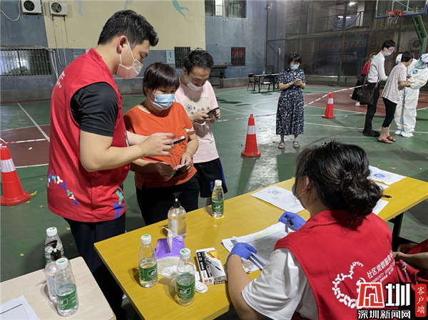 見圳客戶端·深圳新聞網(wǎng)5月31日訊(記者 劉嘉敏 通訊員 鄭躍芳)當(dāng)前,深圳疫情防控“外嚴防輸入、內(nèi)嚴防反彈”形勢依然嚴峻,羅湖蓮塘片區(qū)與鹽田交界,核酸檢測工作不僅時間緊、任務(wù)重,而且面臨巨大的壓力。為堅決打贏這場疫情防控硬仗,5月26日至29日期間,深圳市羅湖區(qū)蓮塘街道坳下社區(qū)在社區(qū)文化廣場設(shè)立了臨時核酸檢測點,不斷完善優(yōu)化核酸檢測工作方案,積極配合醫(yī)護人員開展上門動員、掃碼登記、分診、秩序維護及后勤服務(wù)等保障工作,醫(yī)護人員、街道下沉干部、社區(qū)工作人員、股份公司民兵及黨員群眾日夜兼程,加班加點,確保核酸檢測工作有序高效開展。