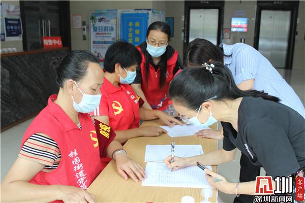 在社區(qū)“宣傳疫苗接種先鋒崗”前,忙碌著黨員的身影。社區(qū)居民林志文,是一名有著21年黨齡的老黨員。今年63歲的她身穿紅馬甲,臂戴“疫情監(jiān)督員”的紅袖章,精神抖擻地站在老圍花園E座出入口,笑容可掬地用本地話問(wèn):“靚仔,打疫苗了嗎?這里可以預(yù)約喲?!薄办n仔”聽(tīng)到如此親切的鄉(xiāng)音,停下匆匆的腳步,“沒(méi)打呢,現(xiàn)在預(yù)約吧?!迸c林姐是最佳拍檔的老黨員尹小妹,她們都是本地人,平時(shí)除了唱歌跳舞,她們還積極參加社區(qū)活動(dòng),疫情當(dāng)前,她們冒著被感染的風(fēng)險(xiǎn),勇敢站出來(lái),用自己的實(shí)際行動(dòng),詮釋著黨員的模范先鋒帶頭作用。