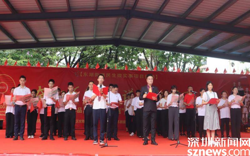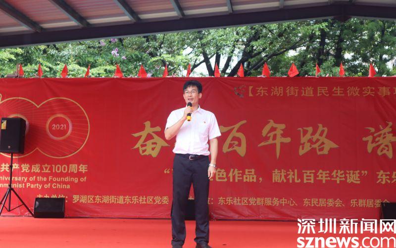讀特客戶端·深圳新聞網(wǎng)2021年7月30日訊(見習(xí)記者 邱婕 通訊員 黃小花)百年征程波瀾壯闊、百年初心歷久彌堅、百年成就催人奮進、百年歌聲唱響今天。7月30日上午,“百幅紅色作品,獻禮百年華誕”東樂社區(qū)建黨100周年慶祝活動在東樂花園文化廣場舉行。東湖街道黨工委副書記、辦事處主任劉慧堅,黨工委副書記、人大工委主任謝統(tǒng)敏,東湖街道二級調(diào)研員、東樂社區(qū)第一書記曾列文,東湖街道辦事處副主任李民,羅湖區(qū)退役軍人事務(wù)局副局長何朝陽,東樂社區(qū)黨委書記劉芳,東樂社區(qū)社工與義工及廣大居民朋友400余人參與此次活動。