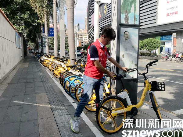 小分隊另一位成員叫何天歡,一位20歲的小伙子。他每天下班后或者上班前,會在單位門前的共享單車停放點執(zhí)勤,已經(jīng)從國慶假期堅持到現(xiàn)在。每天穿著紅馬甲,把共享單車擺放整齊,對他來說,也是一件開心的事情,讓他覺得自己這一天過得有意義。