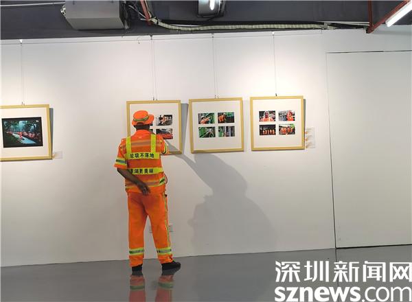 入展作品作者鄭鐘武來到羅湖美術館H廳就看到自己的作品放在顯眼處,還特地請工作人員為他與作品合影。他說6月份在網上看到這個關于環(huán)衛(wèi)工人主題的作品征集活動,就在東門步行街拍下了《步行街一抹“橘”》,自己的作品被選入展并且在美術館展出,讓更多人通過作品了解和尊重環(huán)衛(wèi)工人,覺得特別有意義。