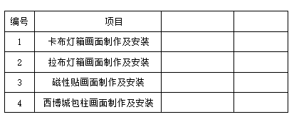 二、項目概況:本次大媒體廣告制作、安裝服務(wù)采購項目進(jìn)行制作、安裝單位供應(yīng)商的招標(biāo),歡迎符合資格的單位參加投標(biāo)。采購范圍見下表: