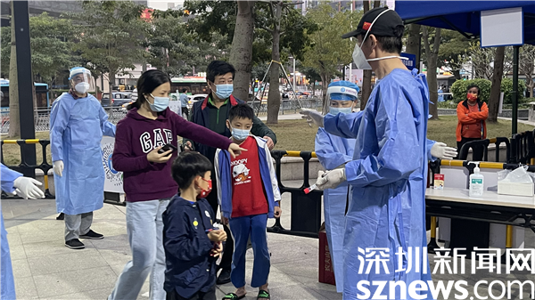“把嘴張開(kāi),放輕松?!贬t(yī)護(hù)人員輕車熟路地進(jìn)行咽拭子采樣,迅速封存標(biāo)本,短短幾秒的過(guò)程不僅體現(xiàn)了“深圳速度”,更凸顯了醫(yī)護(hù)人員的耐心與專業(yè)性。不論是老年人還是小朋友,醫(yī)護(hù)人員都通過(guò)不同的溝通方式高效完成采樣工作,確保核酸檢測(cè)工作有序進(jìn)行。