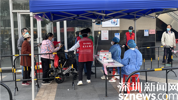 在翠竹街道金翠園核酸檢測(cè)點(diǎn),記者在現(xiàn)場(chǎng)看到核酸檢測(cè)隊(duì)伍共分成兩條隊(duì)伍,居民正按照地面劃好的“一米線”排隊(duì),身穿紅馬甲的社區(qū)工作人員與醫(yī)護(hù)人員正有條不紊地進(jìn)行核酸采樣工作,詢問(wèn)、登記、采樣......在羅湖的街頭,除了秩序井然的核酸檢測(cè),溫暖的故事也在悄然發(fā)生著。
