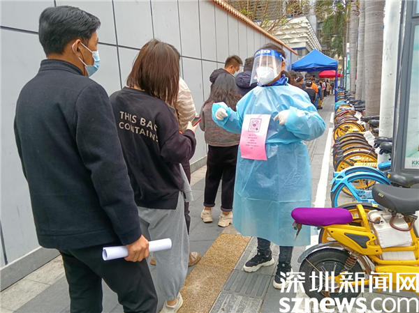 在前幾天的寒風(fēng)冷雨中,吳春艷不顧寒冷,趁孩子在家上網(wǎng)課,趕來做志愿者。在禧程酒店核酸檢測(cè)點(diǎn),她把粵核酸碼貼在胸前,在隊(duì)伍旁邊來回走動(dòng),大聲喊著,“沒有碼的來掃我!”她總是對(duì)社工說,“只要有時(shí)間,我就來幫忙。多一個(gè)人就多一份力量?!?/p>