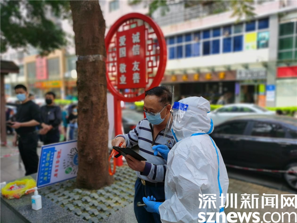 為做好核酸檢測應檢盡檢、愿檢盡檢、不漏一戶、不漏一人。3月5日—6日周末期間,仙湖社區(qū)各核酸檢測點提前就位,各項檢測工作正常進行?!罢垇頇z測核酸的居民朋友,打開微信掃一掃場所碼,打卡成功后,切換粵核酸二維碼給工作人員掃碼。接種新冠疫苗48小時之內不能檢測核酸,謝謝配合?!痹诨ヂ摼W產業(yè)園區(qū)的核酸點位,仙湖社區(qū)黨群服務中心主任劉紅艷腰間圍上裝有試管的袋子,邊掃碼邊宣傳,忙的不亦樂乎。她說:“圍著袋子是為了提高掃碼效率,我們每天檢測7000多人,上千遍都重復同樣的話,一個字都不會錯。居民們都很親切的叫我們‘愛碼士’小分隊,我們也很喜歡這樣的‘愛稱’”。