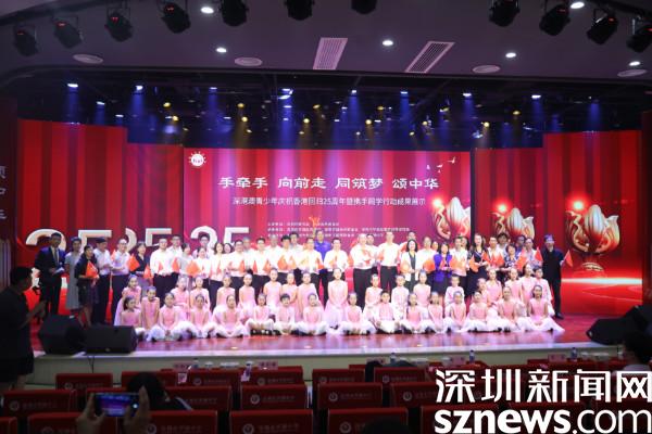 讀特客戶端·深圳新聞網(wǎng)2022年5月25日訊(記者 謝秋平 通訊員 周文干)5月25日下午,由深圳市教育局、深圳海外聯(lián)誼會(huì)主辦,深圳市羅湖區(qū)教育局、深圳羅湖海外聯(lián)誼會(huì)、深圳市羅湖區(qū)教育科學(xué)研究院承辦,香港深圳青年總會(huì)、深圳工程師聯(lián)合會(huì)、深圳市羅湖中學(xué)協(xié)辦的“深港澳青少年慶祝香港回歸25周年暨攜手同學(xué)行動(dòng)成果展”在深圳市羅湖中學(xué)舉行?;顒?dòng)以“手牽手,向前走,同筑夢(mèng),頌中華”為主題,展示了深港澳少年攜手同學(xué)行動(dòng)的系列成果。深圳市委統(tǒng)戰(zhàn)部二級(jí)巡視員周文軍,深圳市委教育工委副書記、市教育局黨組成員楊平,羅湖區(qū)委常委、統(tǒng)戰(zhàn)部部長(zhǎng)黃劍峰參加活動(dòng),香港教育局局長(zhǎng)楊潤(rùn)雄、澳門教育及青年發(fā)展局副局長(zhǎng)黃嘉祺通過(guò)網(wǎng)絡(luò)連線方式參與活動(dòng)。活動(dòng)在羅湖教育云平臺(tái)全程直播,深港澳三地100多所學(xué)校通過(guò)線上直播觀看。