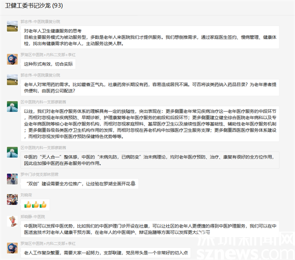 此次沙龍活動(dòng)在一個(gè)小時(shí)內(nèi),收到各書記參與討論的信息超過200條,大家參與情緒熱烈。下一步,羅湖區(qū)委衛(wèi)生健康工委將把此次“書記沙龍”提出的好建議作為下一步老年健康服務(wù)工作的改進(jìn)方向,力促沙龍形成的經(jīng)驗(yàn)、思路切實(shí)轉(zhuǎn)化為實(shí)際舉措和工作亮點(diǎn),在黨建業(yè)務(wù)融合、健康共建共治、探索創(chuàng)新實(shí)踐上持續(xù)發(fā)力,不斷提升群眾的滿意度和獲得感,真正成為群眾的“暖心人”“貼心人”。