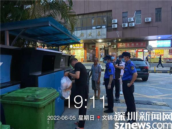 當(dāng)天晚上19點(diǎn)-21點(diǎn),小區(qū)黨員和義工在文錦花園、海富花園垃圾分類(lèi)投放點(diǎn)與小區(qū)垃圾分類(lèi)督導(dǎo)員共同開(kāi)展垃圾分類(lèi)夜間督導(dǎo)活動(dòng),引導(dǎo)居民分類(lèi)投放垃圾,并為居民詳細(xì)講解和宣傳廚余垃圾分類(lèi)的相關(guān)知識(shí)。同時(shí)聯(lián)同街道執(zhí)法隊(duì)開(kāi)展“夜間執(zhí)法”,對(duì)所檢查的小區(qū)廚余垃圾分出量較低的物業(yè)小區(qū)開(kāi)展執(zhí)法檢查,一方面指導(dǎo)垃圾分類(lèi)督導(dǎo)員切實(shí)履職,另一方面對(duì)于亂投放垃圾的行為,對(duì)其責(zé)令改正。