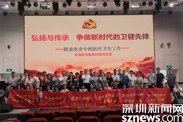 羅湖中醫(yī)院黨委書記林漢群:“針推支部聯(lián)合全院6個支部,在今天這個重要的日子共同為大家展示了一堂精彩的黨課,生動描繪了建黨以來醫(yī)療衛(wèi)生事業(yè)發(fā)展的歷史畫卷,以及不同時期整個衛(wèi)生健康系統(tǒng)的變化,我們這一代人經(jīng)歷了SARS、新冠肺炎,在座每一位同志都自發(fā)地感動、自豪。現(xiàn)在我們處在防控疫情和醫(yī)院發(fā)展的關(guān)鍵時期,全院黨員、群眾齊心協(xié)力,最大限度地發(fā)揮黨支部的戰(zhàn)斗堡壘和黨員的先鋒模范作用,全院上下一心,擰成一股繩,共同書寫羅湖中醫(yī)院發(fā)展的新篇章。”