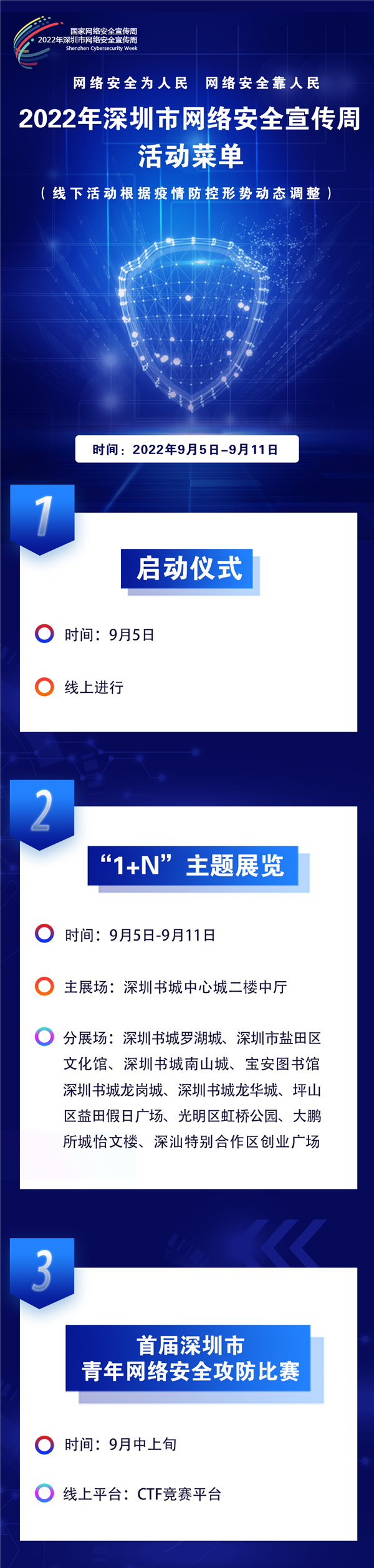 據(jù)介紹,2022年羅湖區(qū)網(wǎng)絡(luò)安全宣傳周將采取線上與線下相結(jié)合、傳統(tǒng)媒體與新媒體齊發(fā)力的方式,圍繞“3+N”的形式開展:“3”包括舉辦一場(chǎng)主題展覽、拍攝一批微電影及策劃一系列新媒體創(chuàng)意作品,“N”包括各單位圍繞網(wǎng)絡(luò)安全宣傳周開展的一系列活動(dòng)。