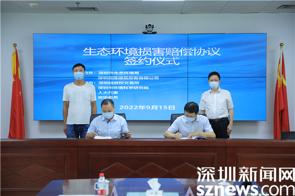 在深圳市環(huán)境科學(xué)研究院、深圳排放權(quán)交易所、人大代表、政協(xié)委員共同見(jiàn)證下,羅湖管理局局長(zhǎng)唐湘良與深圳某公司代表簽署生態(tài)環(huán)境損害賠償協(xié)議。協(xié)議約定,深圳某公司在簽約后,將生態(tài)環(huán)境損害賠償費(fèi)用存入在深圳排放權(quán)交易所開(kāi)設(shè)的賬戶,并完成資金凍結(jié)。該資金全額用于購(gòu)買碳普惠產(chǎn)品,支持全民減排、低碳出行。