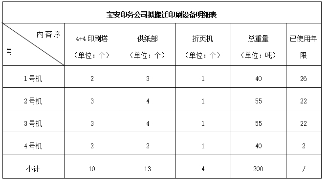 本項目為深圳報業(yè)集團寶安印務整體搬遷印刷設備吊裝項目,搬遷設備為4臺高斯SSC印刷設備,施工區(qū)域包括:設備起拆點深圳市寶安區(qū)流塘路寶安日報報社院內、安裝點深圳市龍華區(qū)清麗路深圳報業(yè)集團傳媒產業(yè)園備用線。印刷設備具體情況如下: