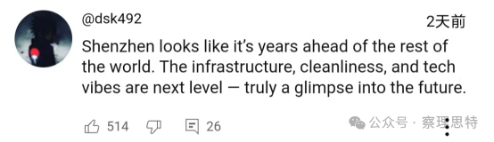 (“深圳看起來比世界其他地方領(lǐng)先好幾年?;A(chǔ)設(shè)施、清潔度和科技氛圍都是一個新的水平——真正讓人看到了未來?!保?/p>