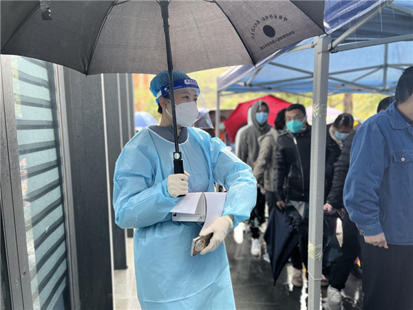 自深圳“0215”疫情突發(fā)以來,羅湖東門街道城東社區(qū)負責的湖貝社區(qū)公園臨時核酸點再次啟動。核酸點重啟的那天,雨嘩啦啦的下,負責人事安排、后勤保障的盧映均在工作群看到入口處的同事僅穿著雨衣服務居民的照片,舍不得讓站崗的同事長時間淋雨,恨不得自己去扛帳篷,奈何6個月身孕,只能安排現場的同事挪動帳篷,那帳篷沉得要四位男同志才扛得動。