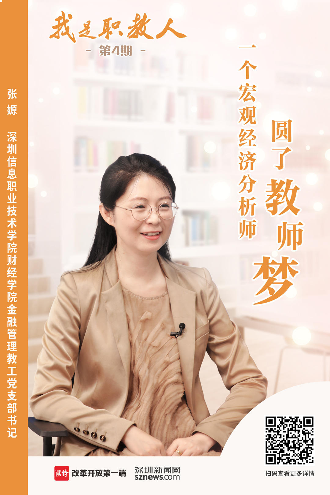 深圳信息職業(yè)技術(shù)學(xué)院財(cái)經(jīng)學(xué)院金融管理教工黨支部書記張嫄,是一名80后的博士研究生,從小夢想成為老師的她在博士畢業(yè)后卻進(jìn)入了金融行業(yè),從好夢想到好行業(yè)再到好學(xué)校,張嫄有著萬花筒般的人生經(jīng)歷。