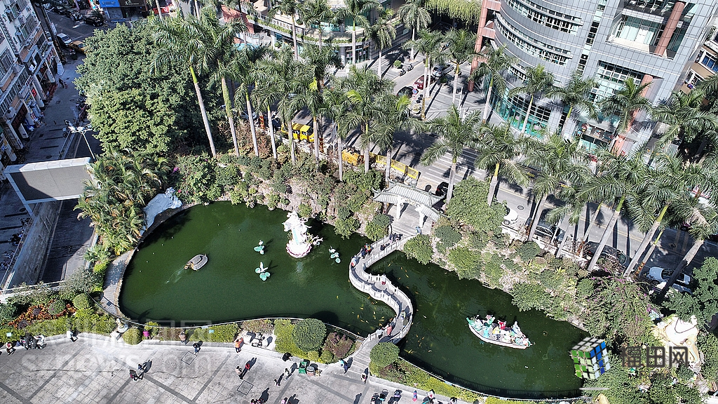 附近居民來到文化廣場(chǎng)前的池子投喂錦鯉。