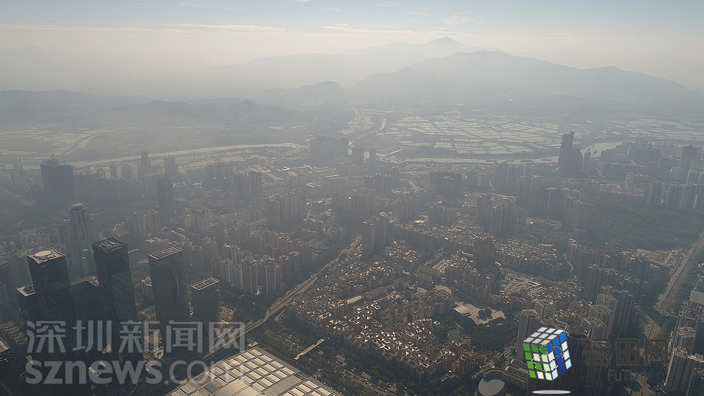1月18日上午,記者操控?zé)o人機(jī)俯瞰深圳中心區(qū)發(fā)現(xiàn),灰霾將天空“割裂”成一道涇渭分明的界線,把城市籠罩得如同一個(gè)充滿(mǎn)霧靄的森林。從平安金融大廈的上空遠(yuǎn)眺,西南面的深圳灣在灰霾的籠罩下變成了一片“沙漠”,東面的京基一百幾乎被灰霾“吞沒(méi)”,北邊平時(shí)肉眼可看的梅林山也因?yàn)槟芤?jiàn)度較低變得若隱若現(xiàn),南面的米埔濕地也被云遮霧繞。