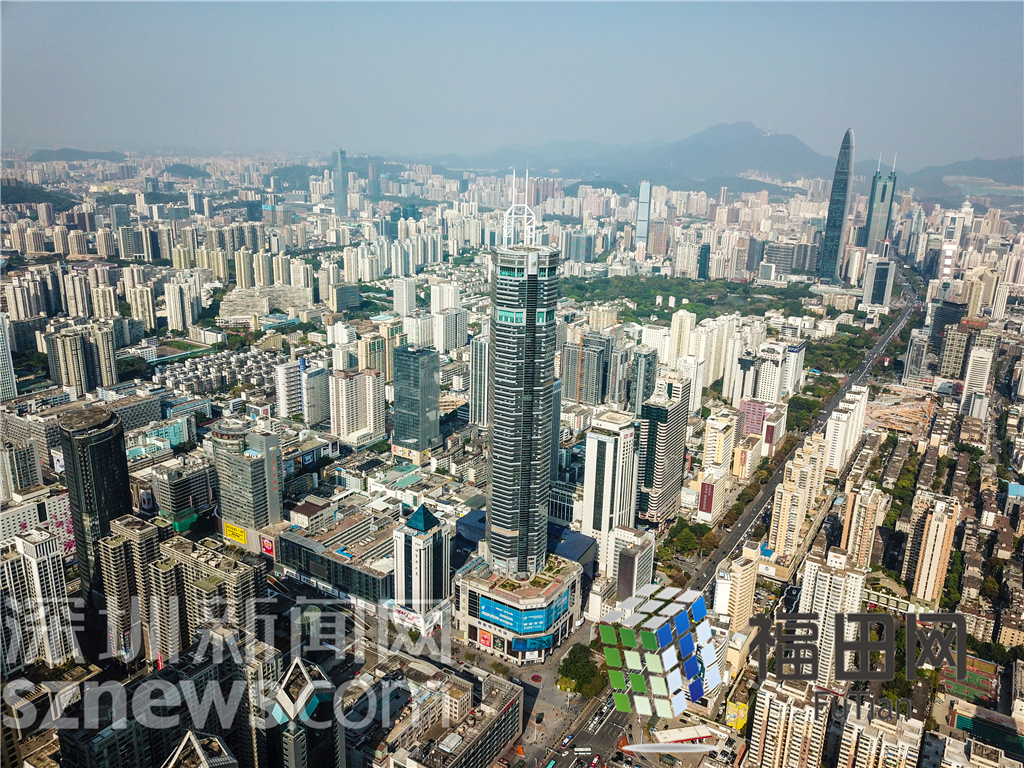 大樓全貌,遠(yuǎn)處是京基100和地王大廈。
