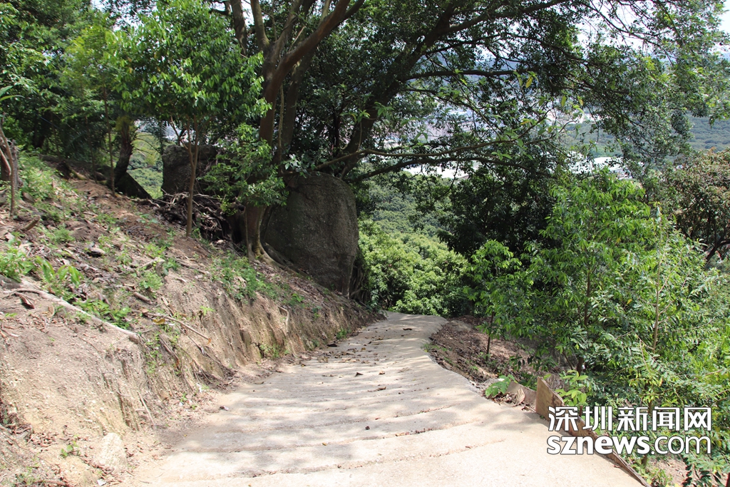 5月16日,深圳新聞網(wǎng)記者爬上羊臺山,用無人機(jī)和相機(jī)拍下羊臺山毀林案件涉案的兩棟違法建筑拆除后的情景。記者從羊臺山隱蔽的一處登山,山路崎嶇且陡峭,沿路都是荔枝林,多頭大型犬見到陌生人狂吠不已。耗時三四十分鐘登臨山腰,可俯瞰西麗水庫,視野極佳。