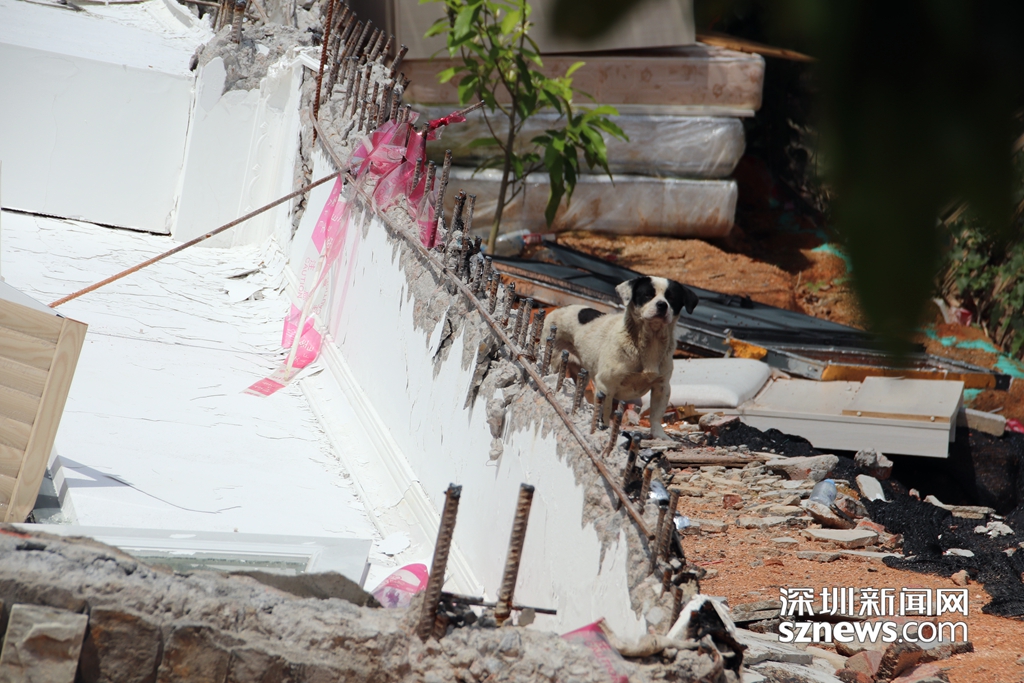違法建筑拆除后,墻體露出的鋼筋