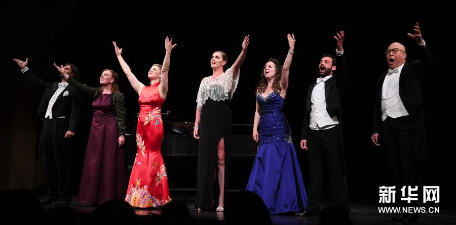 6月30日,在美國(guó)加利福尼亞州舊金山赫伯斯特劇院,著名華裔歌唱家田浩江(右一)和青年歌唱家們演唱《從茉莉花到圖蘭朵》。當(dāng)日,著名華裔歌唱家田浩江偕6位參加過(guò)iSING!國(guó)際青年歌唱家藝術(shù)節(jié)的歌唱家舉辦“田浩江舊金山演唱會(huì)”。iSING!國(guó)際青年歌唱家藝術(shù)節(jié)創(chuàng)辦于2011年,集教育、訓(xùn)練和演出于一體,為全球青年歌者提供學(xué)習(xí)和實(shí)踐的機(jī)會(huì)。在本場(chǎng)演唱會(huì)上,來(lái)自不同國(guó)家的藝術(shù)家們演唱中外經(jīng)典歌曲,為觀眾獻(xiàn)上一臺(tái)中西文化交融的聽(tīng)覺(jué)盛宴。新華社記者吳曉凌攝