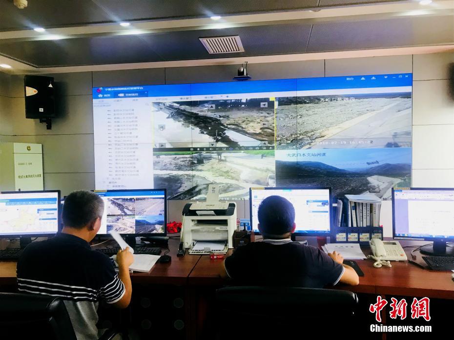 7月19日,寧夏水利廳防汛抗旱指揮調(diào)度系統(tǒng),工作人員監(jiān)控汛情變化。據(jù)了解,近日,甘肅、陜西等黃河流域普降大到暴雨,12日12時(shí),黃河1號(hào)洪峰進(jìn)入寧夏,入境流量達(dá)到每秒2100立方米,繼2012年以來,黃河寧夏段首次發(fā)布IV級(jí)預(yù)警。中新社記者額麗其格 攝