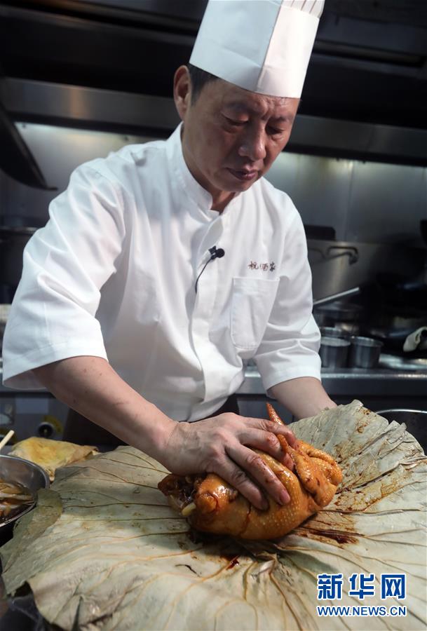杭州酒家老板吳瑞康現(xiàn)場制作本店招牌菜“叫化雞”(6月16日攝)。 金庸在武俠小說《神雕俠侶》中借郭靖之口說過: “為國為民,俠之大者?!蔽鋫b精神在香港備受推崇,有其心向中華文化的情感基礎(chǔ)。在這個(gè)國際美食之都,品味舌尖上的武俠味,內(nèi)中的感覺別有深意。新華社記者 李鵬 攝