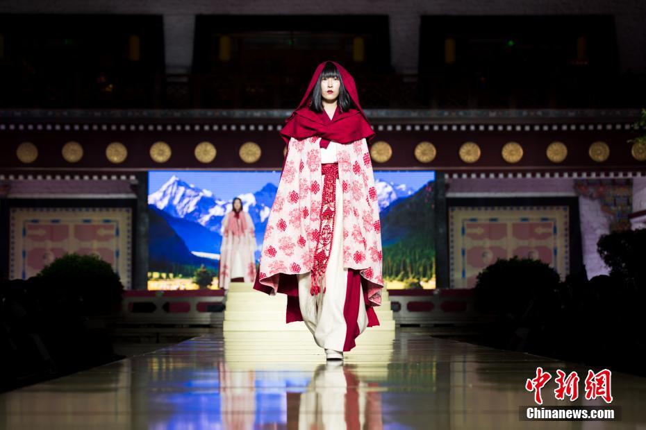 8月12日晚,由西藏職業(yè)技術(shù)學(xué)院與北京服裝學(xué)院共同打造的“凈美雪頓·美好生活”西藏民族服裝與服飾展演活動(dòng)在拉薩舉行?,F(xiàn)場(chǎng)通過(guò)傳統(tǒng)篇、現(xiàn)代篇與未來(lái)篇三個(gè)篇章,展演了藏族傳統(tǒng)服裝26套,設(shè)計(jì)創(chuàng)新服裝58套,共計(jì)84套服裝。圖為模特展示現(xiàn)代設(shè)計(jì)的創(chuàng)新藏族服飾。中新社記者何蓬磊 攝