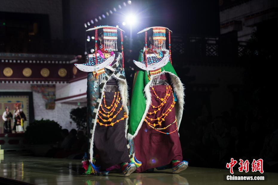 8月12日晚,由西藏職業(yè)技術(shù)學(xué)院與北京服裝學(xué)院共同打造的“凈美雪頓·美好生活”西藏民族服裝與服飾展演活動在拉薩舉行。現(xiàn)場通過傳統(tǒng)篇、現(xiàn)代篇與未來篇三個篇章,展演了藏族傳統(tǒng)服裝26套,設(shè)計創(chuàng)新服裝58套,共計84套服裝。圖為模特展示藏族傳統(tǒng)服飾。中新社記者何蓬磊 攝