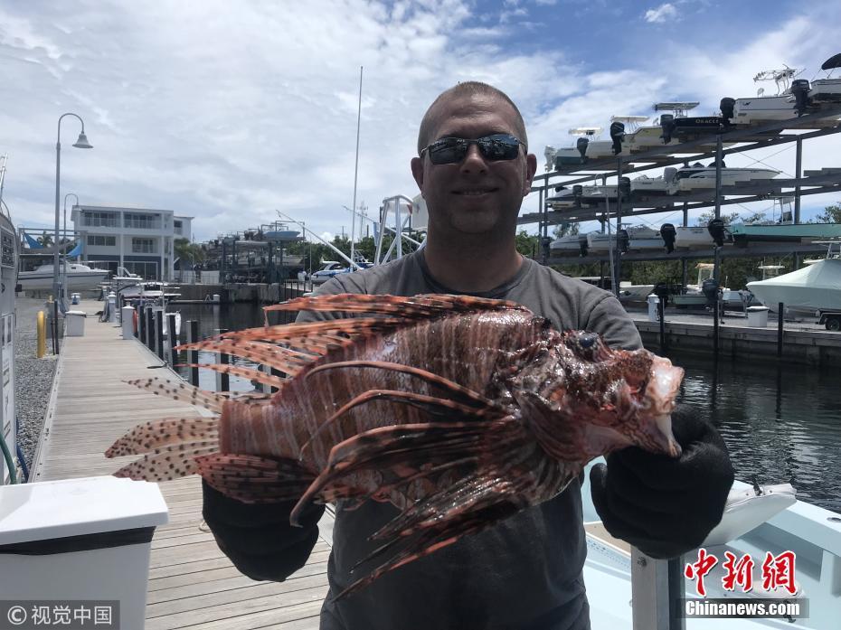 8月21日訊(具體拍攝時(shí)間不詳),近日,來自長島的Timothy Blasko打破了記錄,他捕獲了大西洋最重的獅子魚。37歲的Timothy Blasko是一名技術(shù)精湛的捕魚者,當(dāng)天,他和朋友們?cè)诜鹆_里達(dá)群島伊斯拉莫拉達(dá)海岸捕魚時(shí),遇到了這條大魚。Timothy向朋友要來了魚叉,瞄準(zhǔn)大魚的下方位置叉去,正中目標(biāo)成功捕獲。當(dāng)他們把這條魚和當(dāng)天捕獲的其它魚排在一起時(shí),他們猜測(cè)這條魚可能會(huì)破紀(jì)錄?!八喼笔仟{子魚中的哥斯拉!” Timothy描述道,“這條巨大的獅子魚重達(dá)3.1磅,刷新了大西洋迄今最重獅子魚的國家紀(jì)錄。”圖片來源:視覺中國