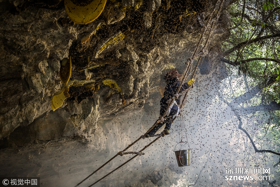 ?“最難采摘的崖蜜,是凹進懸崖內(nèi)側3至5米的那種?!眱赡陙?,小蕊親自跟采了十幾趟蜜,最怕遇到凹陷的蜜源。