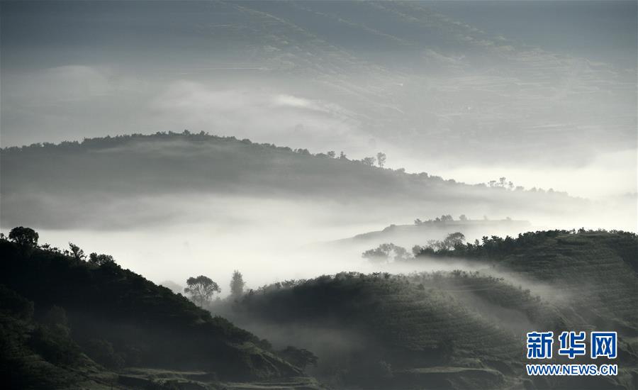 云霧繚繞的寧夏彭陽縣金雞坪梯田公園(7月17日攝)。 近日,寧夏固原市彭陽縣數(shù)十萬畝旱作梯田在曙光中迎來云海景觀,層疊的梯田間云霧繚繞,宛如仙境。據(jù)了解,彭陽縣自1983年建縣以來,始終堅(jiān)持生態(tài)立縣的理念,積極推進(jìn)植樹造林事業(yè),全縣林木保存面積由1983年的27萬畝,增長到目前的203.87萬畝,森林覆蓋率達(dá)到27.5%。 新華社記者 王鵬 攝 [責(zé)任編輯:李曉蕾]