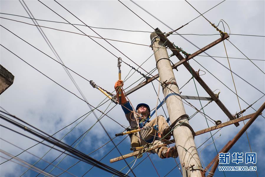 9月5日,麻栗坡縣供電局的工作人員搶修受損電力設(shè)備。