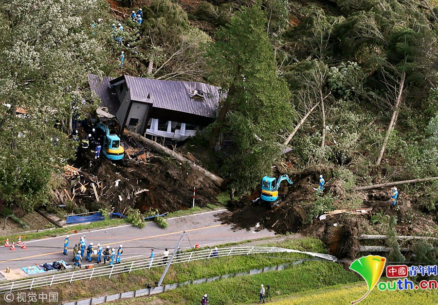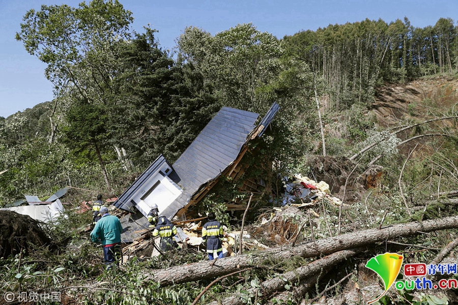 據(jù)報道,這次強震是北海道自震度等級修改的1996年以來首次發(fā)生震度6強的地震,也是日本國內(nèi)繼2016年熊本地震之后再次發(fā)生震度6強以上地震。圖為山體滑坡現(xiàn)場受損的房屋。
